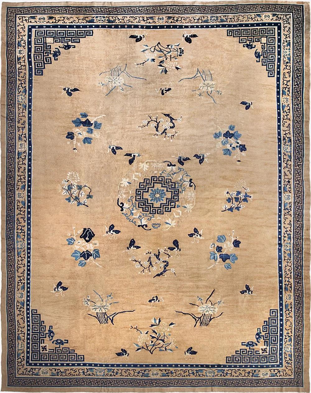 The style of these rugs can be compared with the highest forms of Chinese court art. Although presented in an often limited range of colors, the designs convey philosophical, religious, and social concepts.