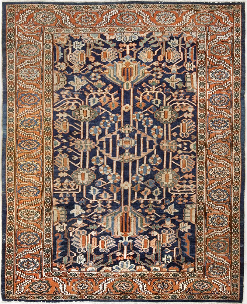 Heriz is a town in northwest Persia (Iran) that has been producing carpets since the 19th century. It is located on Mt. Sabalan, a major source of copper, whose summit is 15,784 feet. The grade of wool used in these carpets is amongst the best, a result of both the high altitude as well as the presence of trace copper in the drinking supply of the local sheep.