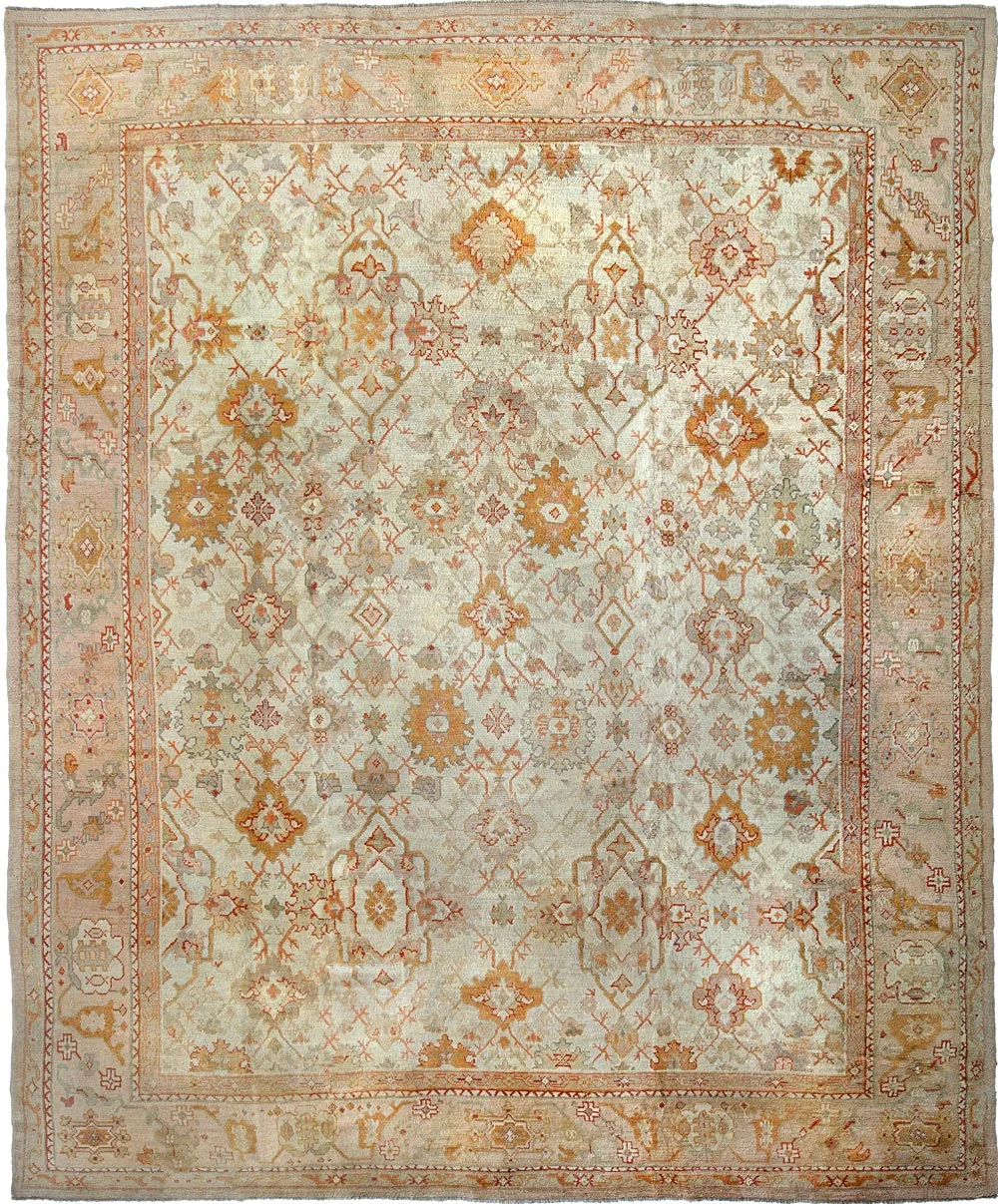 Oushak carpets are named after the large town in western Anatolia (Turkey) where they were woven. This town has been a major weaving center for rug production since the reign of the Ottoman Empire (July, 1299 – October, 1923) up to the current day. This Empire is widely considered to have been the most powerful in the world under the rule of Suleiman the Magnificent during the 16th and 17th centuries. Magnificent court carpets from this period can be found in the world's most prominent museum collections. The end of the 19th century ushered in a rejuvenation in this local industry, as European demand for pile carpets increased. Common characteristics of these Oushaks were larger-scale stylized floral patterns in soft, subtle hues woven with silky luxurious wool. These attributes make this type of carpet highly decorative in today's interiors.