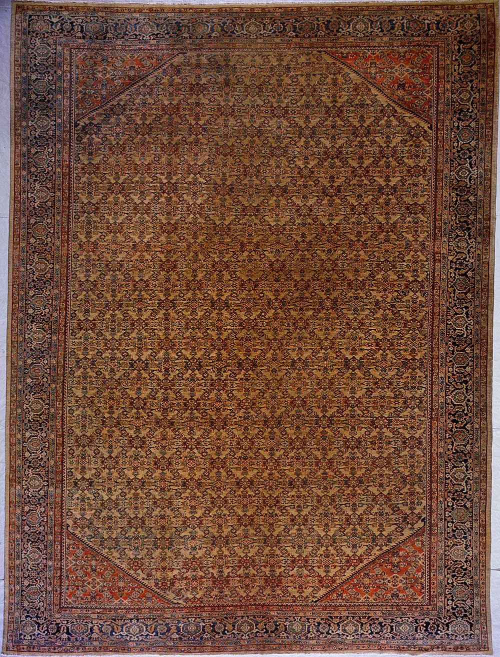 The Arak region in central Persia is generally accepted to have produced more large carpets than any other province in that country. During the second half of the nineteenth century, new carpet production commenced expressly for export to both Europe and the West. The most visible entity to set up looms in this area was Ziegler and Company of Manchester, England, in 1883. This company had previously been exporting printed cottons into this region as well as Turkey, and wanted to take part in this emerging market opportunity. Their base of operation was the town of Sultanabad. Ziegler produced carpets with both European and American tastes in mind by employing designers from retailers such as B. Altman and Liberty of London to create their patterns. These designs were intended to promote a balance and symmetry in scale with both the architectural proportion of a room as well as its furnishings. They were able to maintain a high level of quality by operating their own dyeing facility and providing their weavers with top grade materials. Having large scale allover patterns executed in softer pallets than their counterparts from other weaving centers, these carpets are considered to be amongst the most decorative to have been produced. In 1900 Ziegler had roughly 2500 looms set up in Sultanabad as well as its surrounding villages, one of which was Mahal. Rug production by this firm ended in 1934; however, the aesthetic introduced by them left a lasting impact on most of the carpets woven in this region.