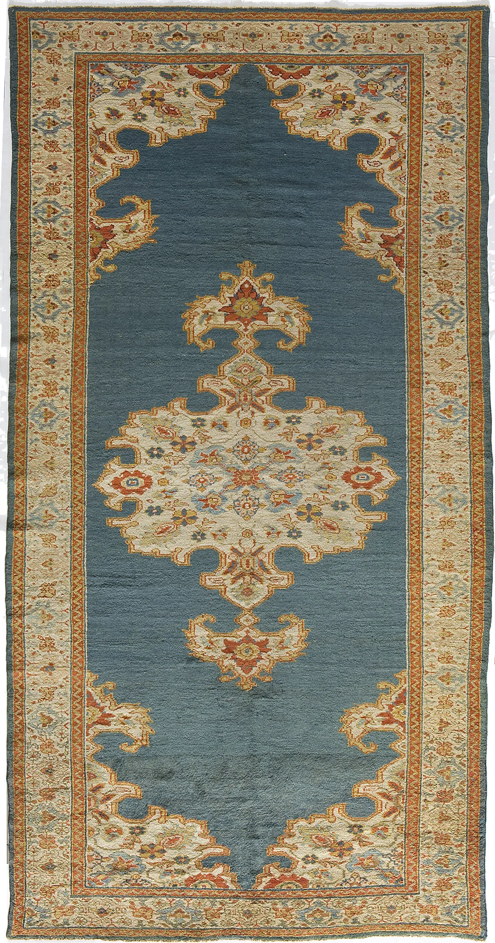 The Arak region in central Persia is generally accepted to have produced more large carpets than any other province in that country. During the second half of the nineteenth century, new carpet production commenced expressly for export to both Europe and the West. The most visible entity to set up looms in this area was Ziegler and Company of Manchester, England, in 1883. This company had previously been exporting printed cottons into this region as well as Turkey, and wanted to take part in this emerging market opportunity. Their base of operation was the town of Sultanabad. Ziegler produced carpets with both European and American tastes in mind by employing designers from retailers such as B. Altman and Liberty of London to create their patterns. These designs were intended to promote a balance and symmetry in scale with both the architectural proportion of a room as well as its furnishings. They were able to maintain a high level of quality by operating their own dyeing facility and providing their weavers with top grade materials. Having large scale allover patterns executed in softer pallets than their counterparts from other weaving centers, these carpets are considered to be amongst the most decorative to have been produced. In 1900 Ziegler had roughly 2500 looms set up in Sultanabad as well as its surrounding villages, one of which was Mahal. Rug production by this firm ended in 1934; however, the aesthetic introduced by them left a lasting impact on most of the carpets woven in this region.